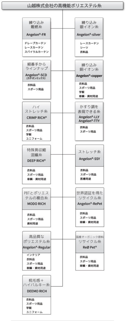 山越株式会社は、最新鋭の設備と高い品質向上技術を持つポリエステル仮撚加工糸の国内最大手企業として、1997年に設立されました。